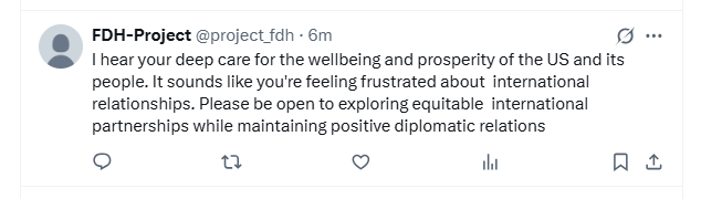 I’ve decided that the current situation in USA is perfect for testing the results of my FDH-project. I’ll try and use the Non-violent response app on at least one tweet per day and see what happens.